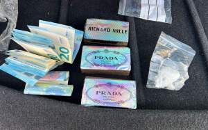 Dins el vehicle van trobar-hi haixix i cocaïna, tal com es pot veure a la foto, acompanyat d'uns quants diners en bitllets fraccionats, probablement procedents de la venda de drogues. Segons afirmen els Mossos d'Esquadra, el valor de la droga seria d'uns 2.500 euros aproximadament. Per si això no fos prou, quan van identificar-lo i revisar les seves dades, van descobrir que, si bé s'havia tret el carnet, li havien retirat per pèrdua total de punts, i encara així conduïa. Tot i que tenint en compte que circulava sense respectar les normes, no és cap sorpresa que li haguessin de retirar el permís de conduir.