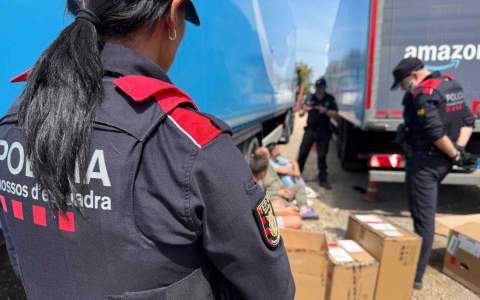 Els Mossos d'Esquadra han detingut cinc camioners que robaven els paquets que transportaven i simulaven que els havien assaltat uns lladres. Els fets van tenir lloc dimecres passat, 22 d'abril, al voltant de quarts d'una del migdia, quan una patrulla de la Unitat Regional de Medi Ambient (URMA) va veure tres homes manipulant diverses caixes plenes de material electrònic com auriculars i altres productes en un aparcament de terra per a camions de terra al voral de servei de l'A-2, a l'altura de Riudellots de la Selva. Els agents van comprovar que havien rebentat el tancament del remolc d'un camió i n'havien tret les caixes, però la sorpresa va arribar quan van comprovar que un dels tres individus era el conductor del mateix camió.