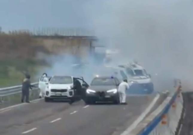 Un grup de persones armades amb metralletes i explosius ha protagonitzat avui, dilluns 9 de febrer, un brutal assalt al mig d'una autopista al sud d'Itàlia. Els delinqüents anaven en cotxes que simulaven ser de la policia quan han aturat dos furgons blindats i n'han assaltat un, utilitzant les seves armes i explosius. Després dels fets, els Carabinieri, la policia italiana, ha pogut detenir dos dels implicats, mentre que els altres han aconseguit fugir. No se sap si els lladres que han escapat han pogut robar el contingut del furgó que han destrossat.
