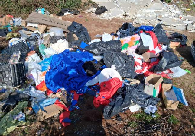 Entre la gran quantitat de deixalles que havien deixat allà abandonades hi havia bosses d’escombraries que contenien decoracions festives, roba, disfresses temàtiques, capses de cartó, plàstics, llibretes amb anotacions internes i un walkie-talkie que portava un adhesiu amb el logotip d'un local de Girona amb llicència d'activitat de bar i sala de ball. En un altre punt de l'abocament, també s'hi van trobar carpetes classificadores amb adhesius d’un segon local, en aquest cas un bar musical.