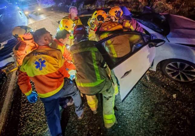 A l'arribada dels serveis d'emergències s'hi han trobat el camió bolcat al marge de la via, però sense que el conductor hagués pres mal. Malauradament, no es pot dir el mateix de la conductora i única ocupant del turisme amb el qual ha col·lidit: la dona ha quedat atrapada entre el seient del conductor i el volant i ha hagut de ser excarcerada pels efectius dels Bombers de la Generalitat abans de poder rebre assistència sanitària.