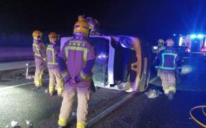 Un dels passatgers, atrapat a l'interior de la furgoneta bolcada