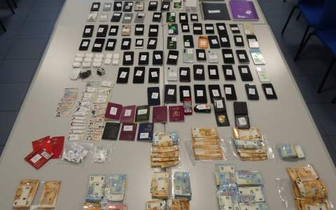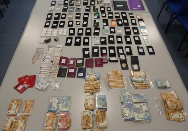 Dos dies després de la detenció, el dijous 5 de febrer, els agents de la Unitat d'Investigació van fer un registre al domicili dels detinguts. A l'interior, els Mossos van localitzar 72 mòbils, la majoria d'ells d'alta gamma, que també constaven com a robats. A més, van trobar també 60 DNI de diferents persones —cinc dels quals d'altres països—, tretze auriculars sense fil, cinc passaports, dos rellotges intel·ligents, 28 targetes SIM i una tauleta electrònica. A més, van trobar 41.000 euros embolicats en paper film i llibretes on escrivien els models dels mòbils i els seus preus.
