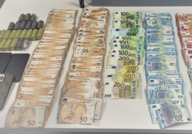 Finalment, el dia 12 els Mossos van poder fer una entrada i escorcoll a casa del camell, on es van endur una sorpresa. Ja sospitaven que hi trobarien drogues, i, efectivament, dins hi havia 105 g de cocaïna i 110 d’haixix, però el que cridava més l'atenció eren tots els diners que hi havia. Els policies van trobar-hi piles de bitllets de tota mena, des de 5 euros a 200, que sumaven un total de 24.000 euros, juntament amb cinc telèfons mòbils. L'home ha quedat detingut per un delicte contra la salut pública per tràfic de drogues, i dins el domicili també hi havia una altra persona, que ha estat denunciada penalment pels mateixos delictes. Tots dos han passat ja a disposició judicial.