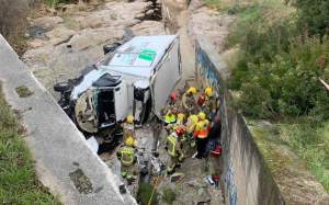 Fruit de la caiguda, el vehicle ha acabat bolcat lateralment i el conductor ha quedat atrapat dins de la cabina sense possibilitats de poder-ne sortir. En rebre l'avís de l'accident, s'han desplaçat fins al lloc cinc dotacions dels Bombers de la Generalitat, una ambulància del Sistema d'Emergències Mèdiques (SEM) i efectius dels Mossos d'Esquadra. Quan hi han arribat, s'han trobat el camioner conscient i en bon estat, però amb algunes lesions lleus. L'equip de rescat ha hagut de tallar el vidre de la cabina per poder-lo treure del camió frigorífic i ha estat portat en una taula rígida fins dalt del pont, on l'esperava l'ambulància del SEM. Un cop feta la primera avaluació, ha estat traslladat fins a l'Hospital de Terrassa, on ha ingressat en estat lleu.