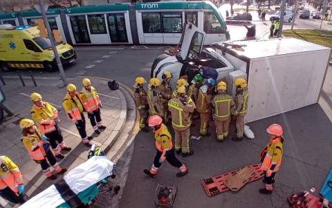 El conductor d'un camió ha resultat ferit després de xocar contra un tramvia al carrer de Cristòfol Moura, a Sant Adrià de Besòs, al Barcelonès. El telèfon d'emergències 112 ha rebut l'avís aquest dijous, 29 de gener, quan faltaven cinc minuts per a dos quarts de deu del matí. Per causes que encara es desconeixen, el camioner s'ha estavellat contra un tramvia de la línia T5 que circulava en direcció Llobregat. A conseqüència de l'impacte, el camió ha acabat bolcant. Fins al lloc de l'accident s'han desplaçat cinc unitats dels Bombers de la Generalitat que, durant gairebé dues hores, han hagut de fer tasques per alliberar el camioner de la cabina.