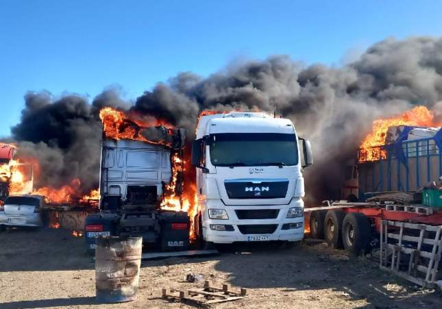 A dos quarts d'una del migdia, els efectius han donat l'incendi per controlat. Segons els Bombers, el foc ha afectat cinc tràilers, quatre dels quals han cremat completament i l'altre al 20%. A més, també s'han cremat vuit cotxes, maquinària i restes de ferralla que hi havia a l'aparcament.
