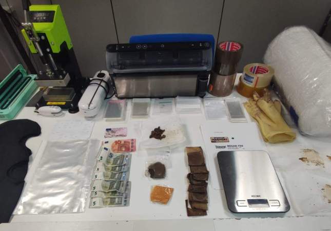 Els policies van registrar el cotxe i, a l'interior del maleter, van trobar 78 grams de droga —suposadament, haixix—, una premsa amb restes d'aquesta substància i material que els camells fan servir per empaquetar i distribuir els estupefaents, com per exemple una balança de precisió. També van decomissar un passamuntanyes, diners en efectiu i documentació d'altres persones, les quals no eren al cotxe.
