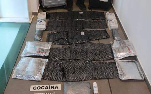 Ja aïllat de la resta de passatgers, els agents van interrogar l'home per saber d'on venia i quin era el motiu del seu viatge. No obstant això, l'individu va començar a donar respostes incongruents i que no van fer més que aixecar les sospites dels policies, motiu pel qual van decidir inspeccionar a fons les dues maletes que portava i les seves pertinences. Va ser aleshores quan, en un doble fons, es van trobar deu planxes amb una substància blanquinosa en pols que semblava cocaïna que estaven enganxades a la roba. A més, també es va trobar la mateixa substància en quatre paquets d'una espècie de sucre o edulcorant i en dos cilindres que hi havia amagats dins un peluix.