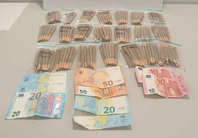 Quan els agents de la Guàrdia Urbana van aturar l'home, van identificar-lo i escorcollar-lo, prestant especial atenció a la bossa que duia a les mans. A dins van trobar-hi una gran sorpresa: la bossa amagava més de 200 porros de marihuana, tots ells preparats per la venda. A més, també li van requisar 220 euros en efectiu, que, suposadament, hauria guanyat venent altres cigarretes estupefaents per la ciutat. Amb aquests indicis, la Guàrdia Urbana de Barcelona va detenir el delinqüent per un delicte contra la salut pública per tràfic de drogues.