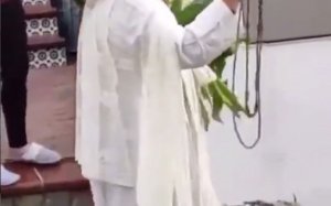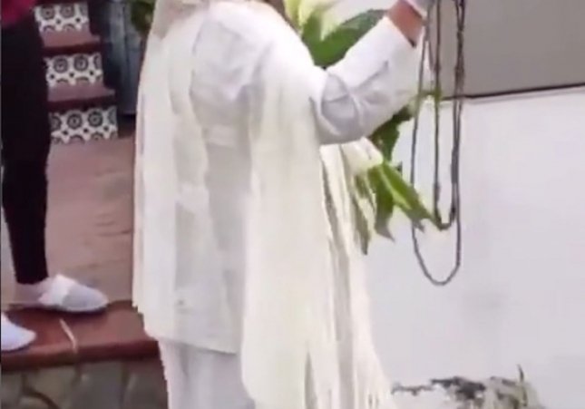 Tres persones han organitzat una processó de Setmana Santa pels carrers del seu poble i, mentre dos anaven disfressats com Crist i la Verge Maria, un altre els gravava.