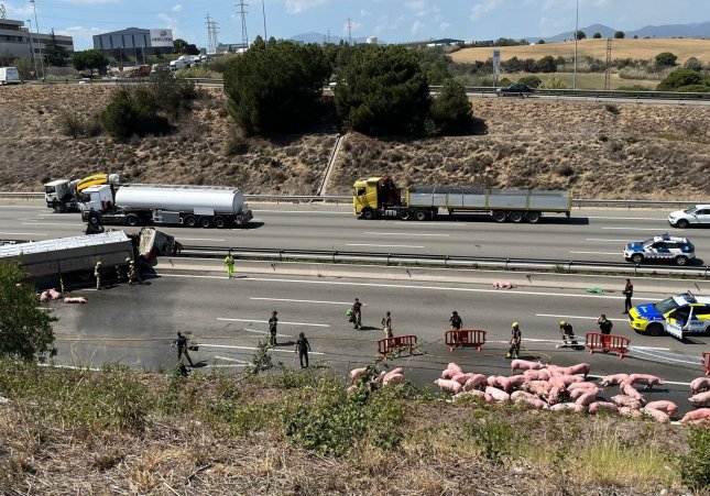 Los cerdos han salido aterrorizados del remolque del camión y han empezado a moverse por la AP-7. Los Mossos d'Esquadra coordinan, junto con Agents Rurals, Bombers de la Generalitat y la Policía Local de Santa Perpètua de Mogoda, el reagrupamiento de los animales con el objetivo de restablecer la circulación lo antes posible, según han explicado desde la policía catalana. El Servei Català de Trànsit (SCT) informa de que la vía se encuentra cortada en sentido norte y que, en sentido sur, se han podido abrir dos carriles entre Barberà y Santa Perpètua después de que también se tuvieran que cerrar por la presencia de animales en la calzada. Hay retenciones desde Sant Cugat del Vallès y Trànsit recomienda como vías alternativas la C-16 y la C-25.
