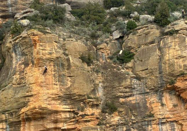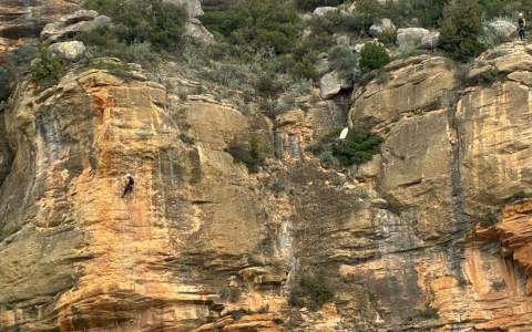 Los hechos han tenido lugar durante la mañana de hoy, domingo 1 de marzo, hacia las once y media del mediodía. Dos hombres estaban haciendo la vía ferrata Cágate lorito en Camarasa, cuando, en un punto, se han quedado totalmente bloqueados. Las causas exactas se desconocen, no se sabe si uno de ellos se ha asustado y se ha bloqueado, si el siguiente punto estaba demasiado lejos, si han hecho algún paso mal... Sea como sea, aunque la causa no esté clara, la consecuencia se ha hecho evidente: ninguno de los dos podía salir de allí sin ayuda.