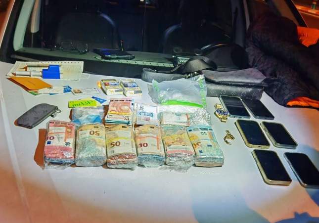 En el interior del coche, los Mossos d'Esquadra encontraron una gran cantidad de dinero en efectivo en dos monedas diferentes: por un lado, 59.345 euros y, por otro, 3.000 pesos mexicanos, que equivaldrían a unos 148 euros. Además, también encontraron diversos tipos de droga, especialmente 190 gramos de cocaína, 17,5 gramos de hachís y 2,5 gramos de marihuana, en la parte posterior del coche. También le encontraron una pulsera y un reloj de alta gama y diferentes teléfonos móviles.