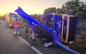Fruto del impacto, la grúa acabó volcada sobre el quitamiedos de la autopista, mientras que el camión, de 40 toneladas, hizo la tijera y quedó atravesado en medio de la vía sin que nadie pudiera pasar. Hasta el lugar se desplazaron efectivos de los Mossos d'Esquadra, cinco dotaciones de los Bombers de la Generalitat y dos ambulancias de los Serveis d'Emergències Mèdiques (SEM). Los sanitarios tuvieron que atender a una persona, aunque no pudo ser dada de alta en el mismo lugar de los hechos sin necesidad de trasladarla al hospital. Por su parte, los Bombers tuvieron que retirar las biondas rotas y los materiales esparcidos en la AP-7. Fruto de los trabajos de los equipos de emergencias, se tuvo que cortar la vía completamente en dirección a Barcelona durante horas, provocando colas de hasta seis kilómetros.