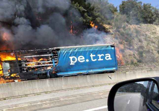 Un impactante accidente entre dos camiones en la C-25 ha dejado dos muertos después de que uno de los vehículos se incendiara. Por otro lado, uno de los conductores también ha acabado afectado por las llamas, y se le ha trasladado hacia el hospital en estado menos grave. El fuego se ha extendido hacia la vegetación que hay al lado de la carretera, lo cual ha obligado a los Bombers a desplazarse hacia allí para apagar las llamas y evitar un nuevo incendio en nuestra casa.
