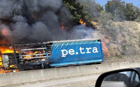 El fuego del camión se extiende por la vegetación
