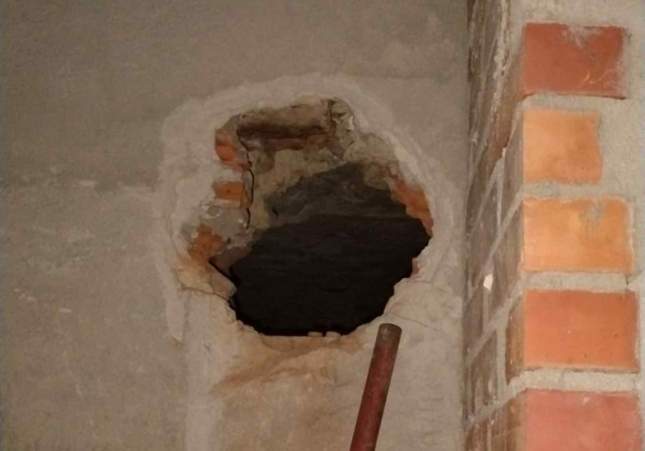 Se escapa por un agujero hecho en la pared