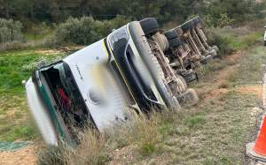 Hasta el punto kilométrico 12 de la carretera LV-7021, donde ha volcado el camión, se han activado hasta cuatro dotaciones de los Bombers de la Generalitat, para estar preparados en caso de que las personas que había dentro de la cabina tuvieran que ser excarceladas. Aun así, los ocupantes —el copiloto y un copiloto— han podido salir por su propio pie antes de que llegaran los servicios de emergencia. Los Bombers han desconectado la batería del vehículo y han asegurado la zona. Después, una dotación se ha quedado dando tareas de apoyo a las maniobras para levantar el camión.