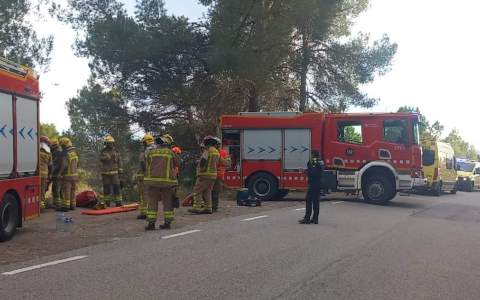 Durante las tareas de rescate, la carretera BV-1485 quedó cortada al tráfico y no se pudo reabrir hasta pasadas las seis de la tarde.