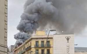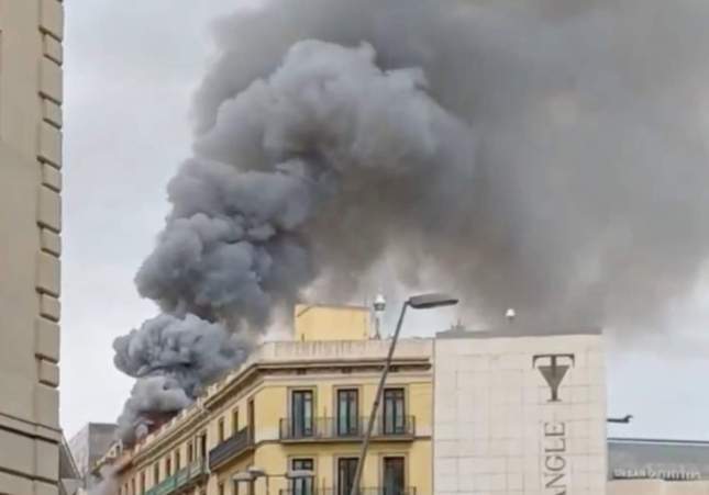 Grave susto este domingo al mediodía en el centro de Barcelona. El teléfono de emergencias 112 ha recibido una alerta cuando quedaban pocos minutos para las doce que informaba sobre un incendio en la calle de Bergara, muy cerca de la plaza de Catalunya. Según han confirmado fuentes municipales, el fuego se ha declarado en la azotea de uno de los hoteles que hay en esta calle céntrica de la capital y, tal como se puede ver en las imágenes que acompañan la noticia, el fuego ha generado una espesa columna de humo negro que se ha podido ver desde varios puntos de la ciudad y ha impresionado mucho a vecinos y turistas por igual.