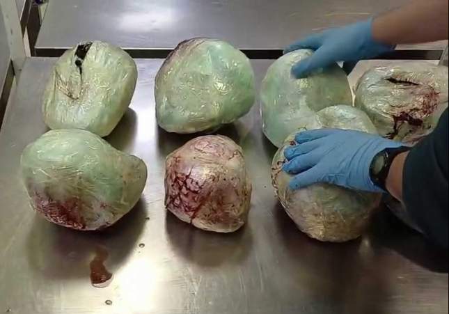 Quince pangolines muertos y envueltos en plástico