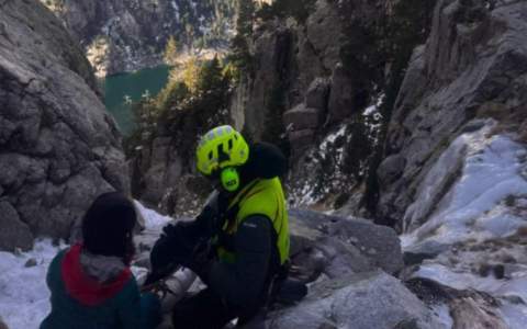 Rescate de los Bombers de la Generalitat en las montañas catalanas este sábado. El teléfono de emergencias 112 recibió este 6 de diciembre, alrededor de las doce y media del mediodía, una llamada que alertaba sobre la caída de una escaladora que estaba haciendo la vía de la Presa de Cavallers, en la Vall de Boí (Lleida). En concreto, había sufrido una caída justo cuando llegaba a la parte superior de la cascada Islandis y se había hecho daño en una de las piernas, lo que le imposibilitaba continuar la actividad.