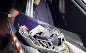 Una patrulla de los Mossos d'Esquadra se ha desplazado hasta el lugar donde supuestamente se encontraba este individuo y han sido recibidos de la misma manera. A pesar de ver que se trataba de un coche de la policía catalana, el vándalo también les ha lanzado una piedra que ha impactado contra el retrovisor y la puerta del copiloto. Fruto del impacto, el vidrio se ha hecho añicos y los pequeños trozos han ido a parar dentro del vehículo, provocando algunos cortes a los policías.